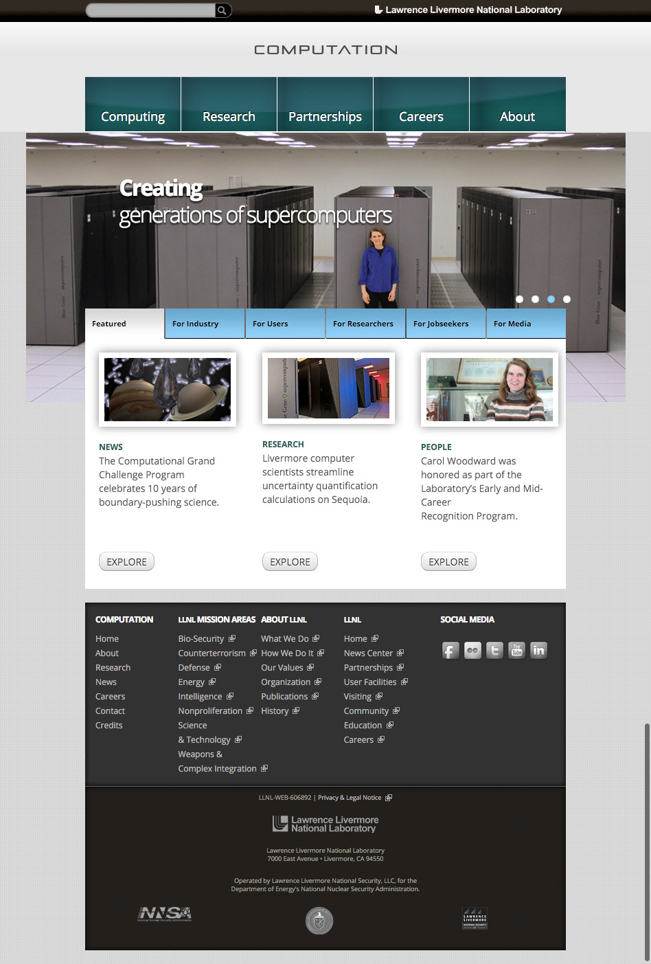 Visual Identity, Responsive CMS (Drupal) Web Design, and Development for LLNL's Computation Directorate